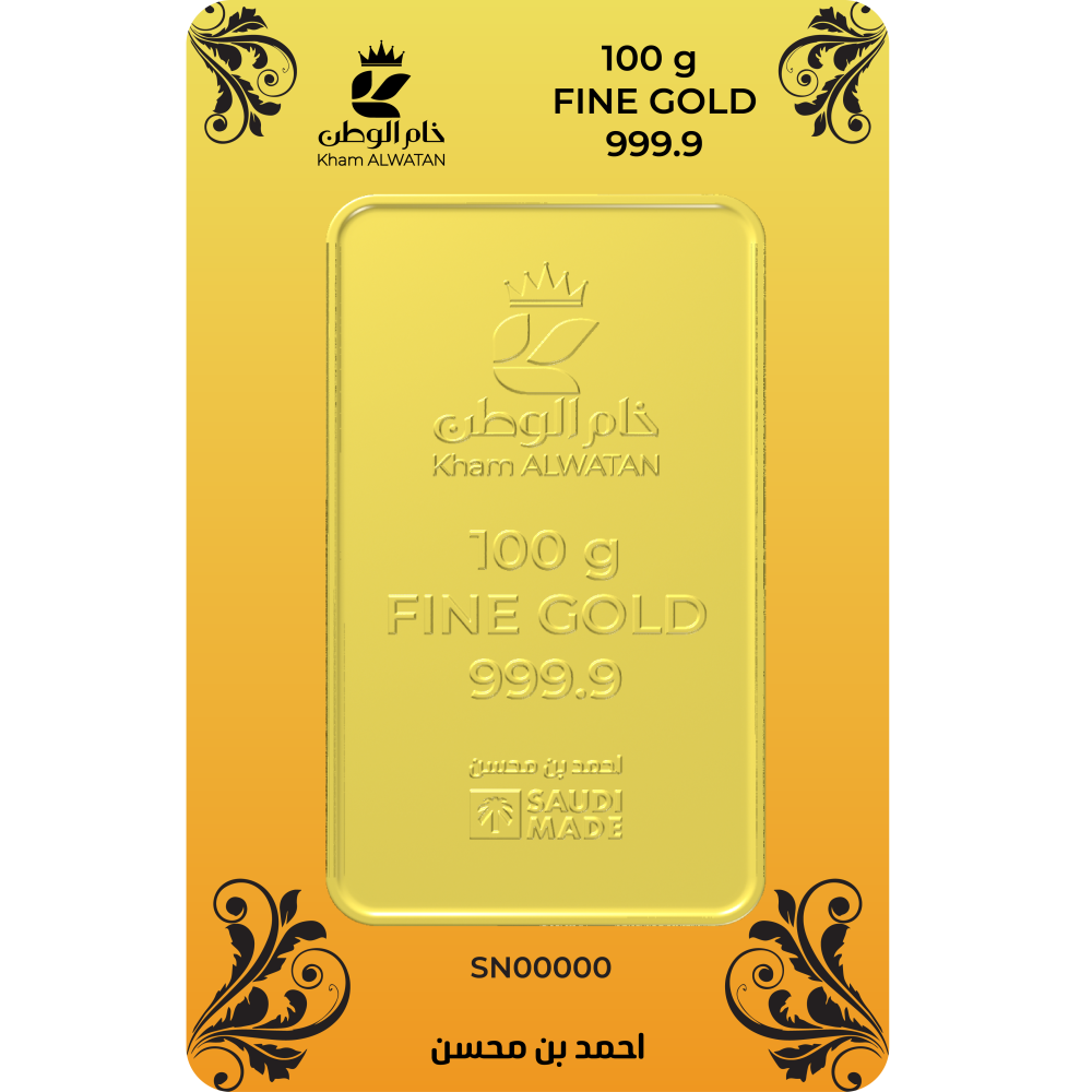 وصف سبيكة ذهب 100 غرام عيار 24 - خام الوطن: